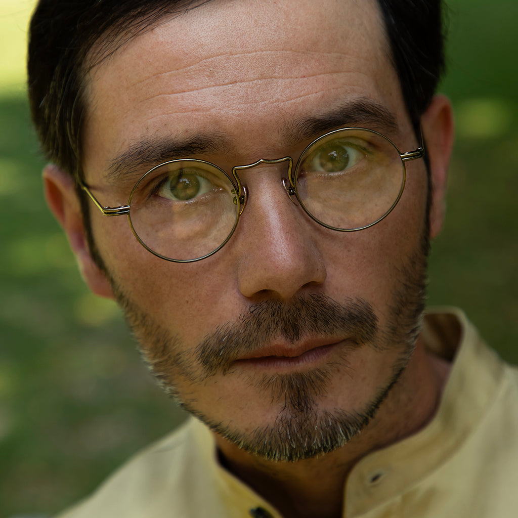 一見、真円に見えるが程よく顔になじむよう絶妙に計算された丸形は、掛ける人のセンスを引き立てる。