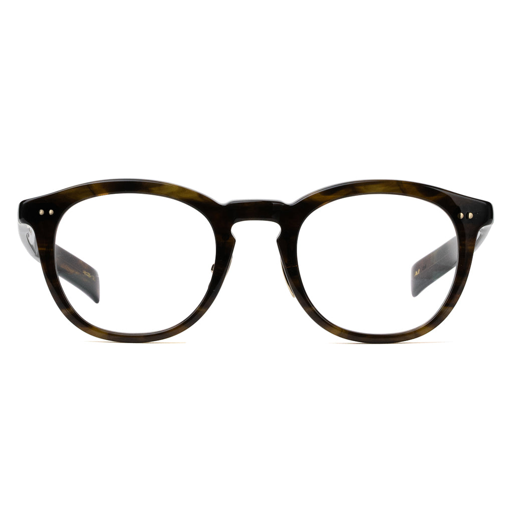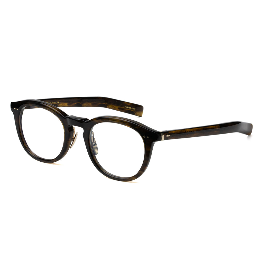 アパレルブランド"wei"とのコラボモデル。サイジング・リムの太さ、また流行のボストン型に少し丸みを出したレンズシェイプが特徴で、そこにMr.Gentleman EYEWEARの基本デザインであるフロント傾斜角も組み入れています。長く、末広がりで直線のテンプルは頭部を優しく包み込み、他にはない掛心地の良さを実現しています。女性をイメージしたデザインですが、男性にも大変人気のあるモデルの1つです。